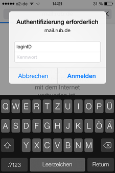 Zur Einrichtung des RUB-Mailkontos auf einem mobilen Gerät der Firma Apple rufen Sie auf dem Gerät mit dem Web-Browser Safari folgende Webseite auf: