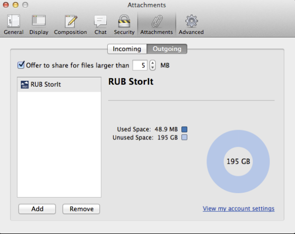 Die Konfiguration startet unter Einstellungen → Attachments → Outgoing: